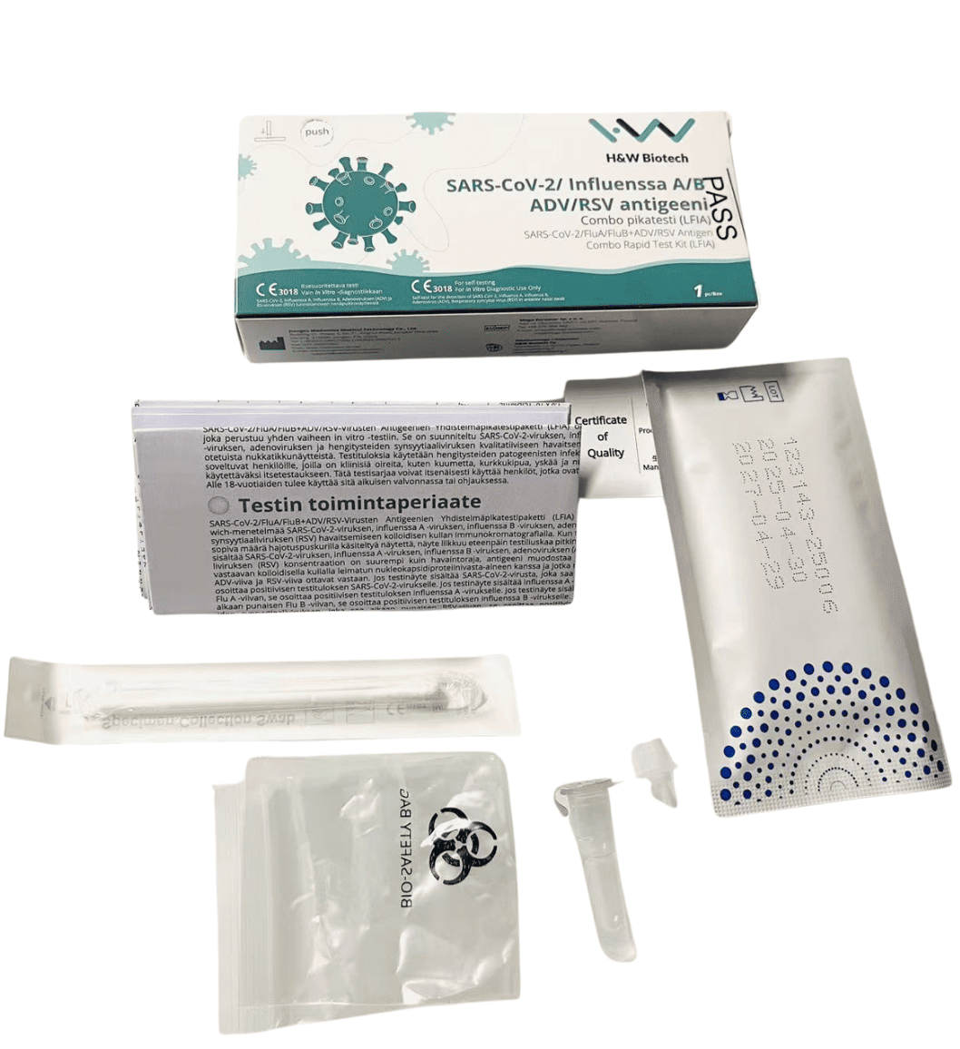 H&W SARS-CoV-2/FluA/FluB+ ADV/RSV- Virusten Antigeenien Yhdistelmäpikatestipaketti (LFIA)
